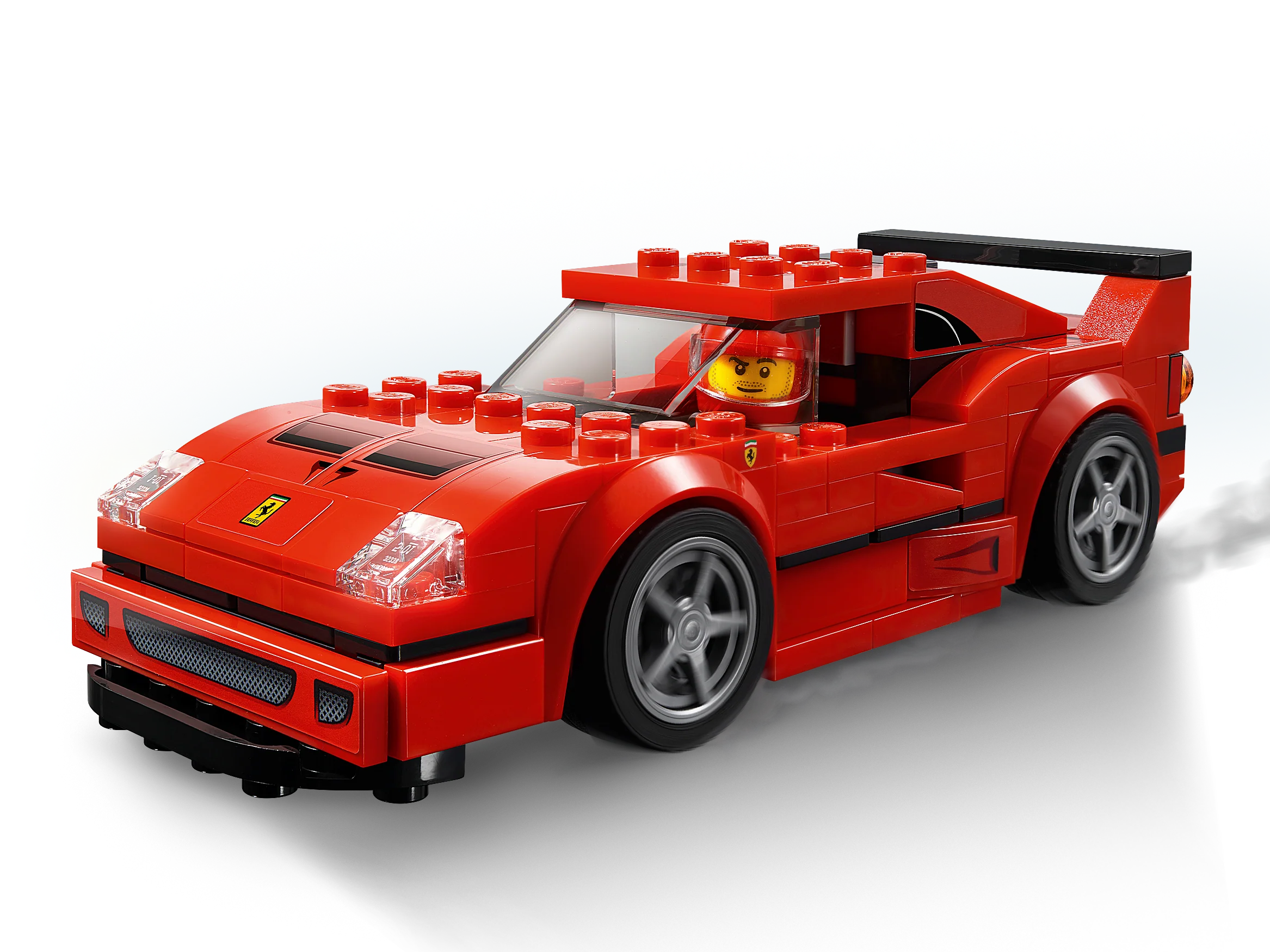 - The race-ready, buildable Ferrari F40 Competizione vehicle features a minifigure cockpit with removable windshield, wheels with rubber racing tires, translucent light-style elements, racing colors, authentic design details, plus interchangeable hoods and rear spoilers.